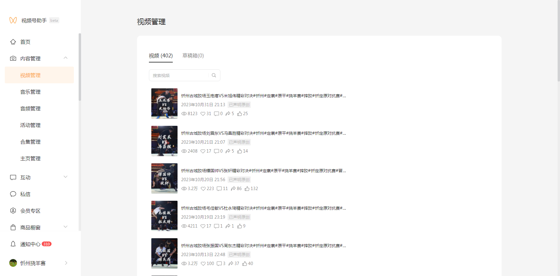 1. 视频号名字:忻州挠羊赛