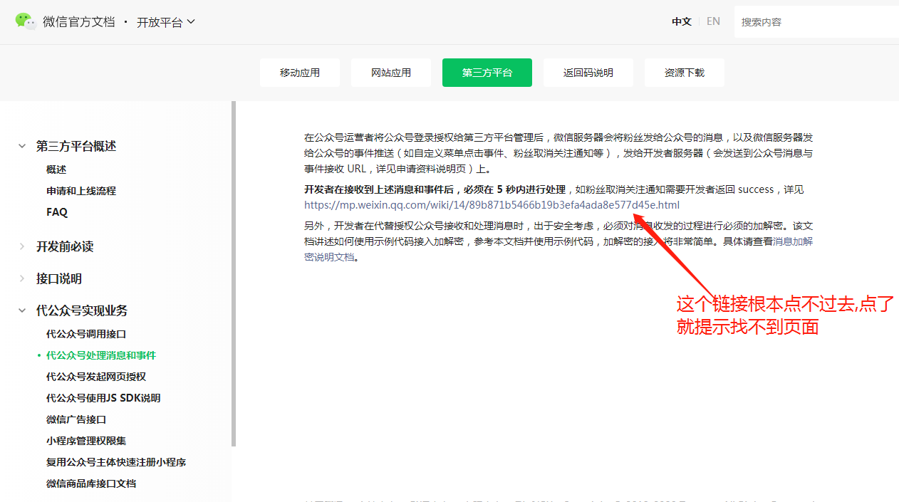 我明明问的是第三方接入代公众号回复消息,却给我帖公众号回复消息的文档链接。