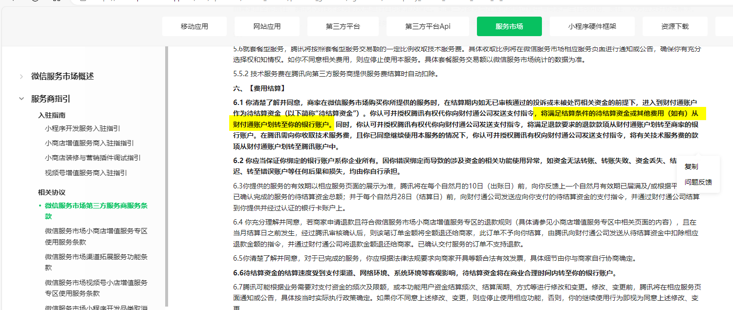 公司业务需要,将要在微信平台开立第三方服务商账户。看微信有关第三方服务商的条款,需要开立资金账户进行收款。想问:
