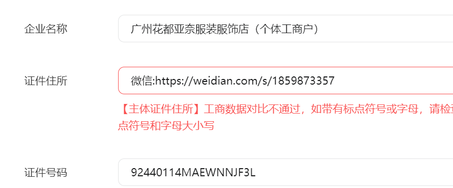 客户的营业执照是电商营业执照,没有地址。在注册小程序的时候,无法填写地址,该怎么办?