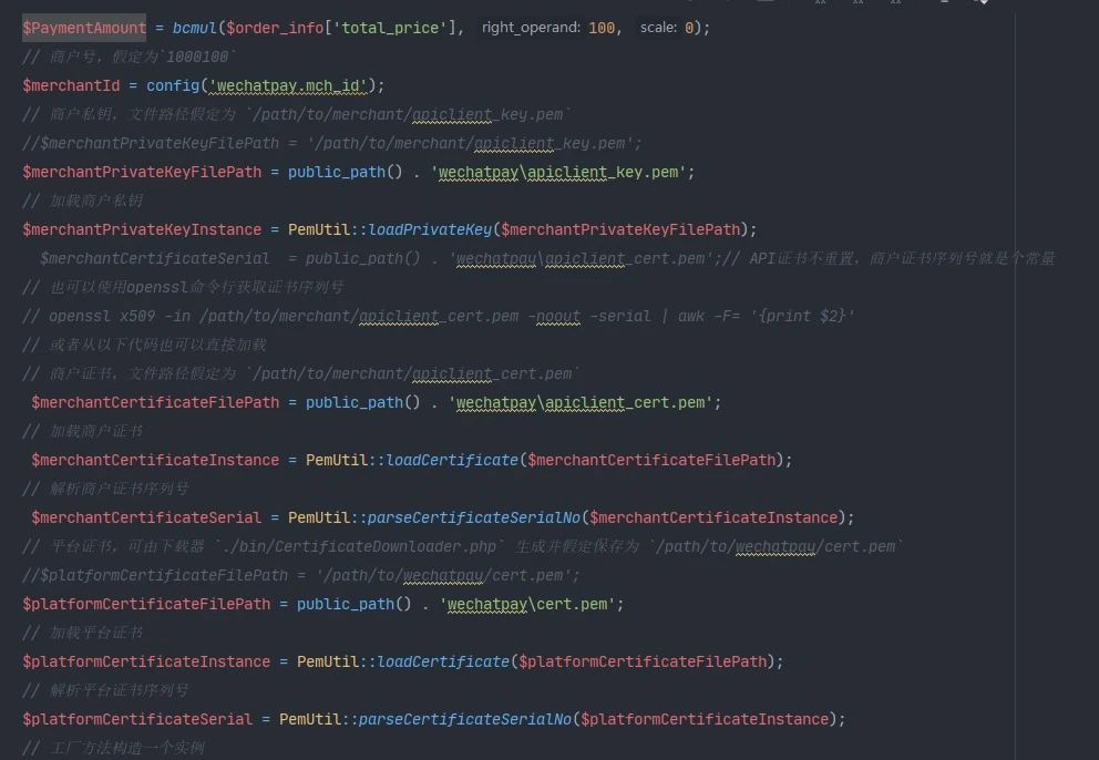 $PaymentAmount = bcmul($order_info['total_price'], 100, 0); // 支付金额