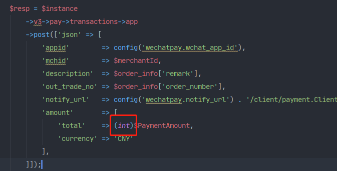 intval($PaymentAmount)$PaymentAmount = bcmul($order_info['total_price'], 100, 0); // 支付金额`$PaymentAmount` 是个啥?是整数吗?不要传浮点数(1.0 这种)或者字符串("1" 这种)。