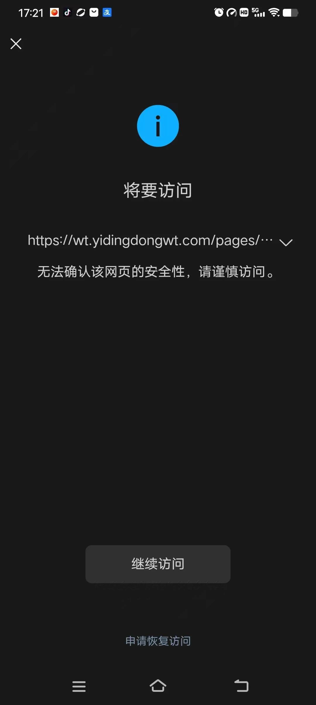 你好,经审核,域名【yidingdongwt.com】下的链接【https://wt.yidingdongwt.com/pages/member/center/index】的内容存在违反《微信外部链接内容管理规范》的第2.1条“诱导分享类内容”,请对相关内容修改后进行申诉;申诉方式可点击停止访问页底部入口进行操作,我们会在三个工作日处理,请耐心等待。 详细规则请参考《微信外部链接内容管理规范》http://weixin.qq.com/cgi-bin/readtemplate?t=weixin_external_links_content_management_specification