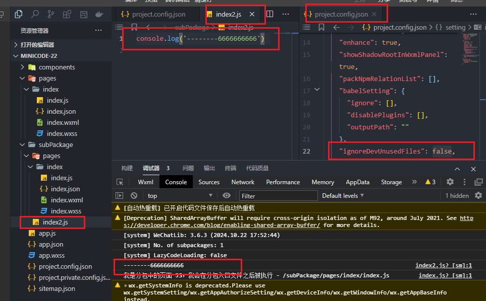 1、当ignoreDevUnusedFiles从true改为false之后,工具是重新编译了,控制台也打印了入口文件的内容,但是重新打开项目之后就会报错。猜测改为false之后应该就会报错才对,但是工具可能存在某些缓存导致没有清空unsedFiles?导致控制台还是能打印文件内容,就会让开发者非常疑惑,以为不是这个配置导致的问题!