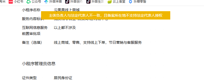 小程序备案时填写的主体负责人就是法人,提交备案报错“主体负责人与法定代表人不一致”,请问如何处理?