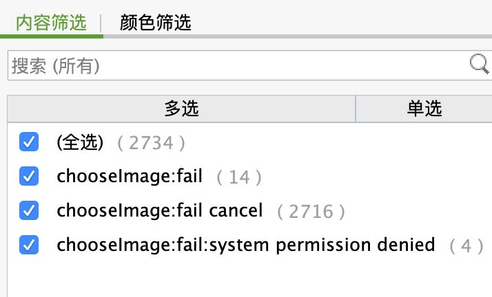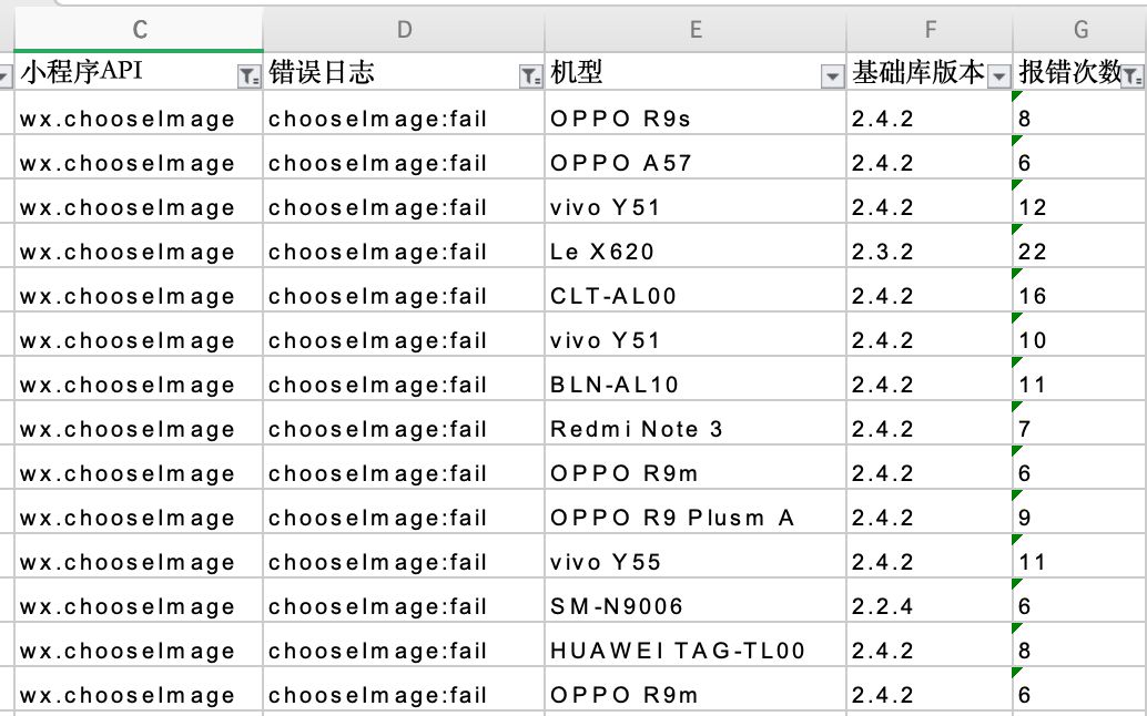 我们也做了错误日志的上报,把所有可能出错的地方,都上报了日志,以下是wx.chooseImage的部分截图: