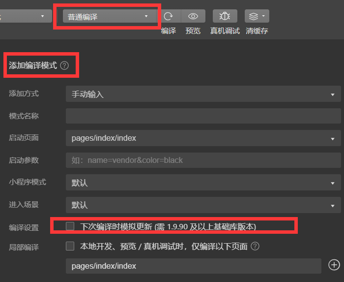 添加编译模式,模拟更新
