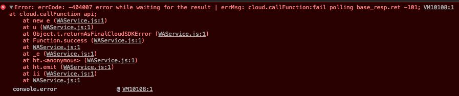 Error: errCode: -404007 error while waiting for the result | errMsg: cloud.callFunction:fail polling base_resp.ret -101; at cloud.callFunction api;