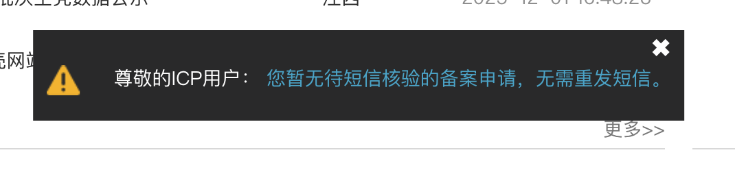 进行重发之后提示:尊敬的ICP用户: 您暂无待短信核验的备案申请,无需重发短信。
