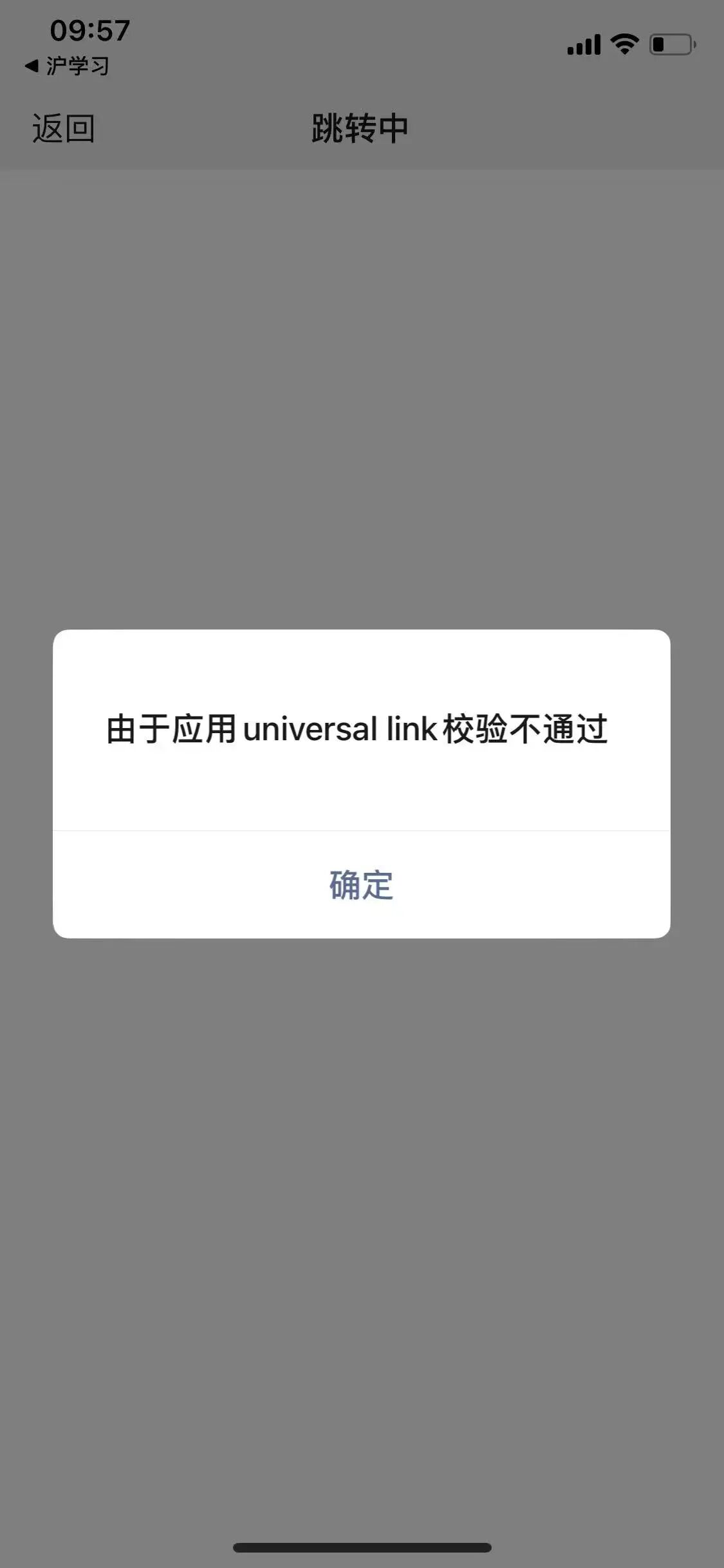 偶现,支付微信显示“由于应用universal link校验不通过”。