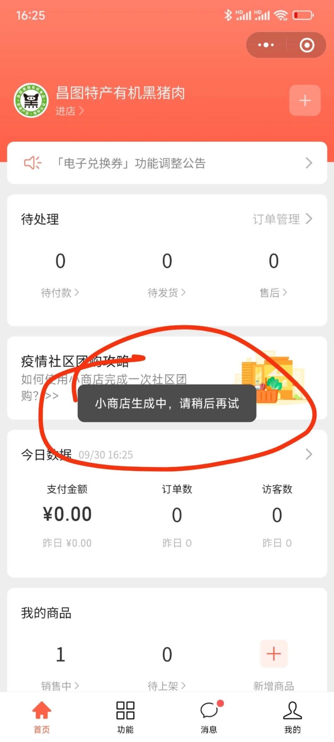 我的小商店一直都是这样,看不了界面,扫码也不行,商品可以正常上架,