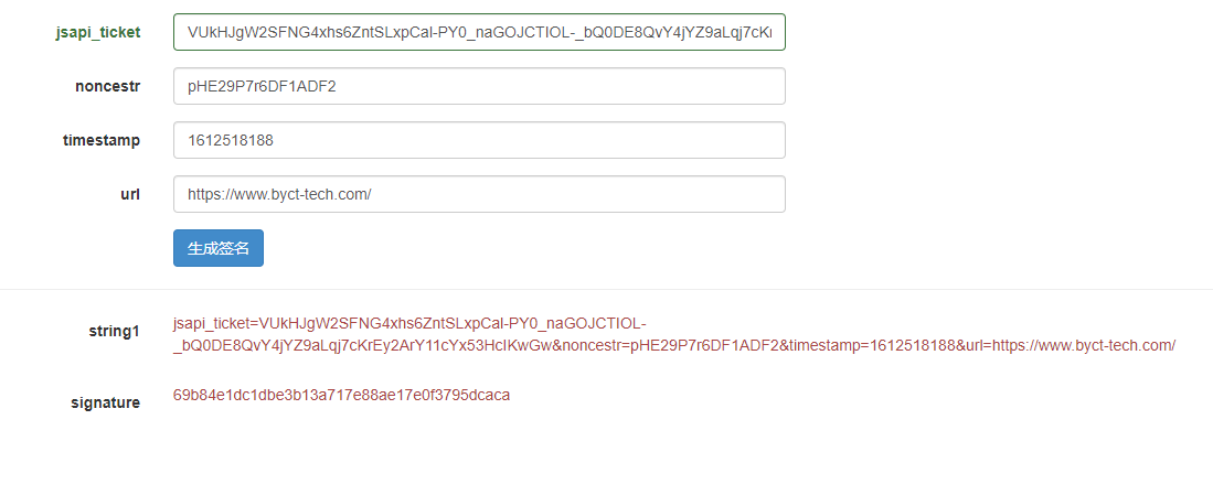 jsapi_ticket=sM4AOVdWfPE4DxkXGEs8VMCPGGVi4C3VM0P37wVUCFvkVAy_90u5h9nbSlYy3-Sl-HhTdfl2fzFy1AOcHKP7qg&noncestr=Wm3WZYTPz0wzccnW×tamp=1414587457&url=http://mp.weixin.qq.com?params=value我都安全域名是www.byct-tech.com
