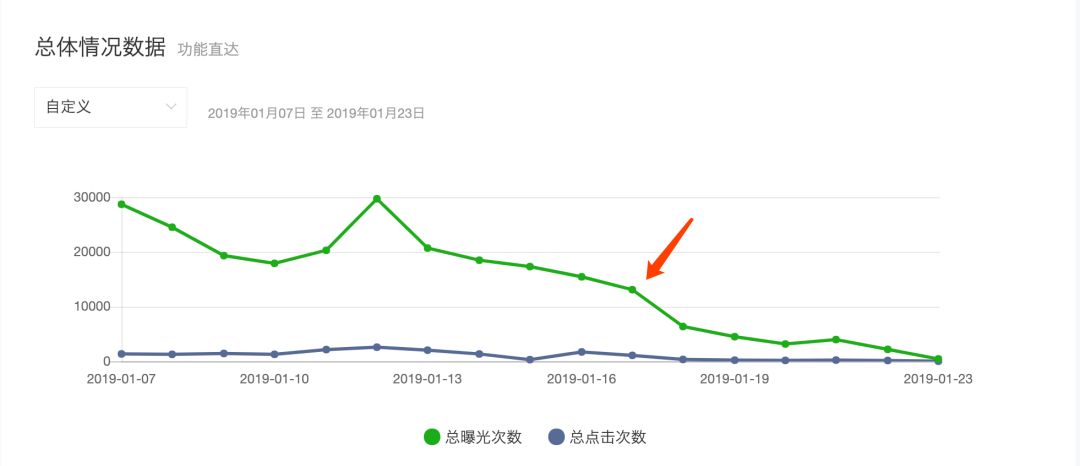 看了下,上线1个月多,没有明显变化,之前有一波展示量倒是有一定下降,但幅度也不大,且不是在1月17日