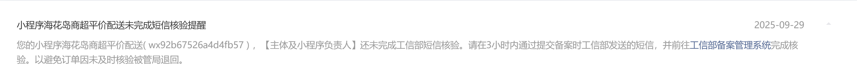 主体负责人与小程序负责人昨天已经在工信部的网站核验完对象了 今天为什么还是发通