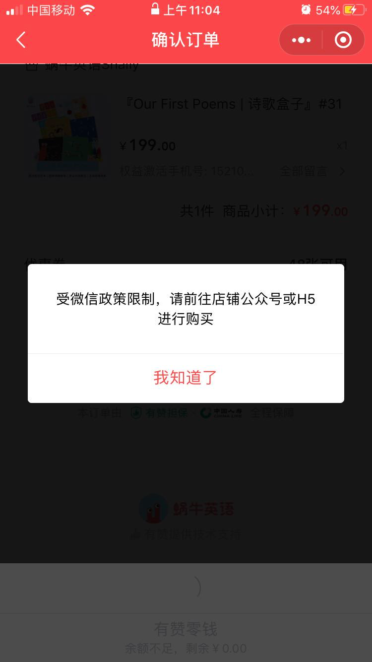 有赞客服让我来向微信官方咨询风控原因,并恢复有赞小程序可以正常支付~