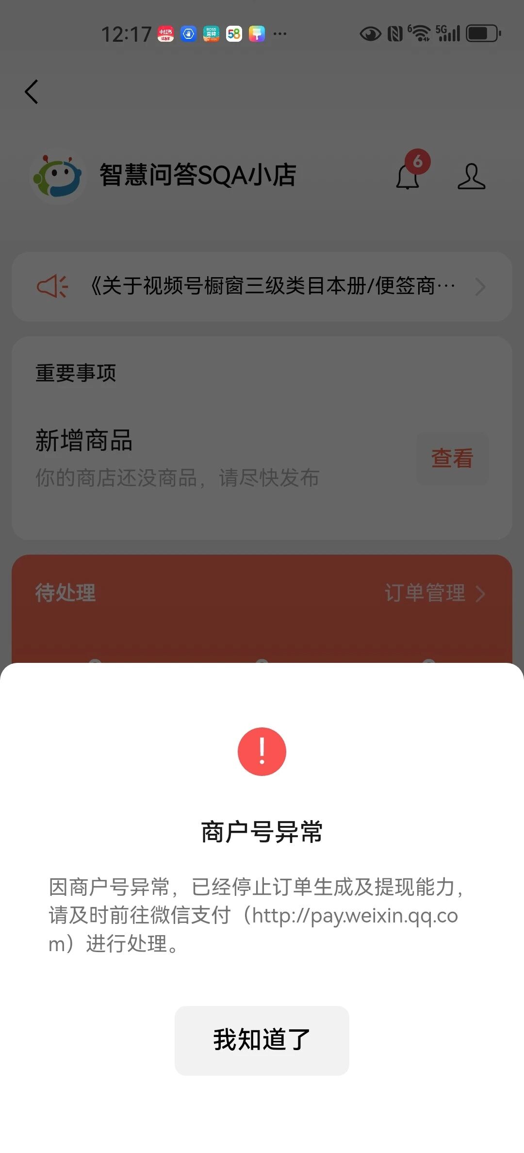 登录微信视频号小店提示商户支付账号异常,登录商户支付平台后并未发现异常问题,请问具体是是什么原因导致视频号小店无法使用?