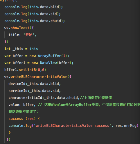 返回一切正常。 是我那个 ArrayBuffer 写错了吗?我不知道如何写这个数据直接从官方拷贝的。。求帮助。。谢谢