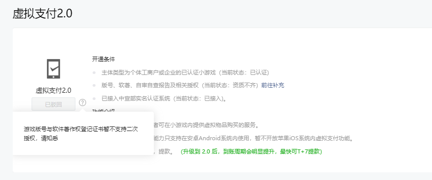 小游戏在进行虚拟支付升级时,驳回理由如下,需要怎么处理