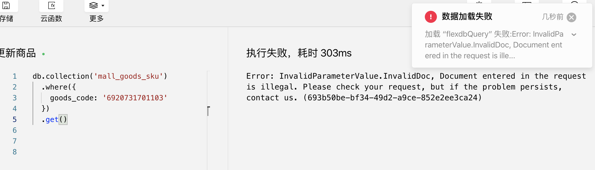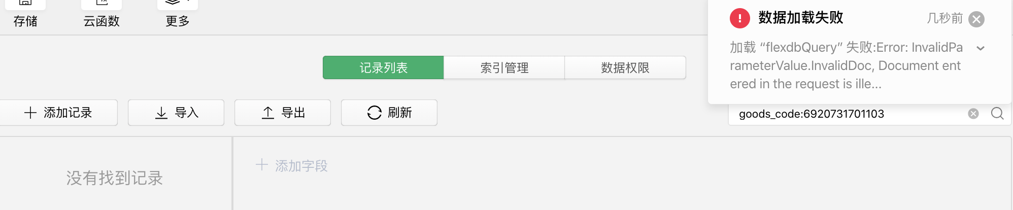 很神奇的问题,数据已经add到数据库成功了,并且在通过一个云函数A查询成功了,如图