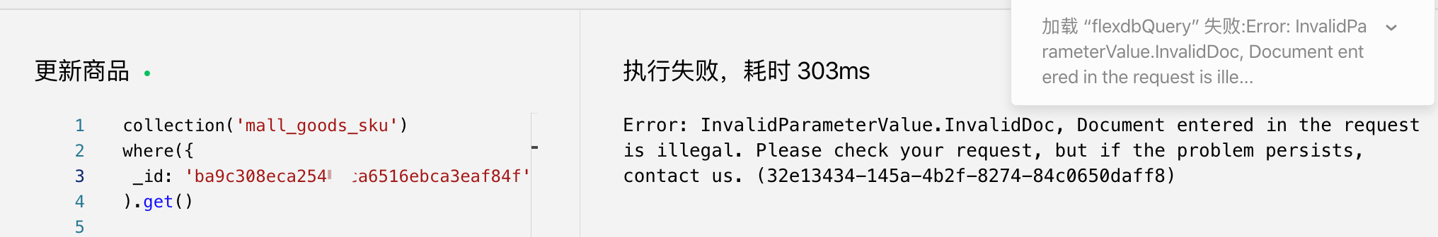 复制这个id到数据库去搜索,报错了,如图: