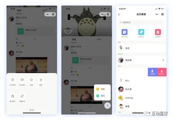 在互动星球中,每个圈子都可为用户设定不同角色,也可随时更改成员的角色身份(圈主、管理员、嘉宾等)。
