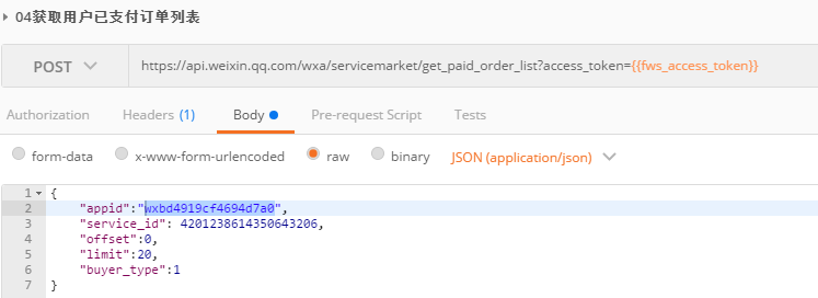 获取用户已支付订单列表:https://developers.weixin.qq.com/doc/oplatform/partner/service_market/interface/value_added/servicemarket_get_paid_order_list.html。