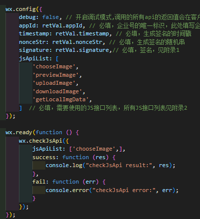 若认为没有问题,可以点击顶部菜单「微信开发者工具」-「调试」-「调试微信开发者工具」,选到network面板,然后刷新一下你当前的网页,找到 `preverify` 这个接口,看看verify_info_list里的chooseImage的状态是什么