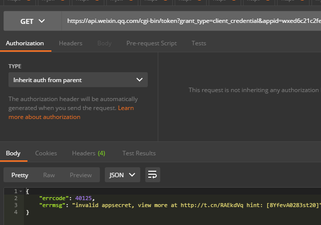 "errmsg": "invalid appsecret, view more at http://t.cn/RAEkdVq hint: [l.2tCa08354078]"