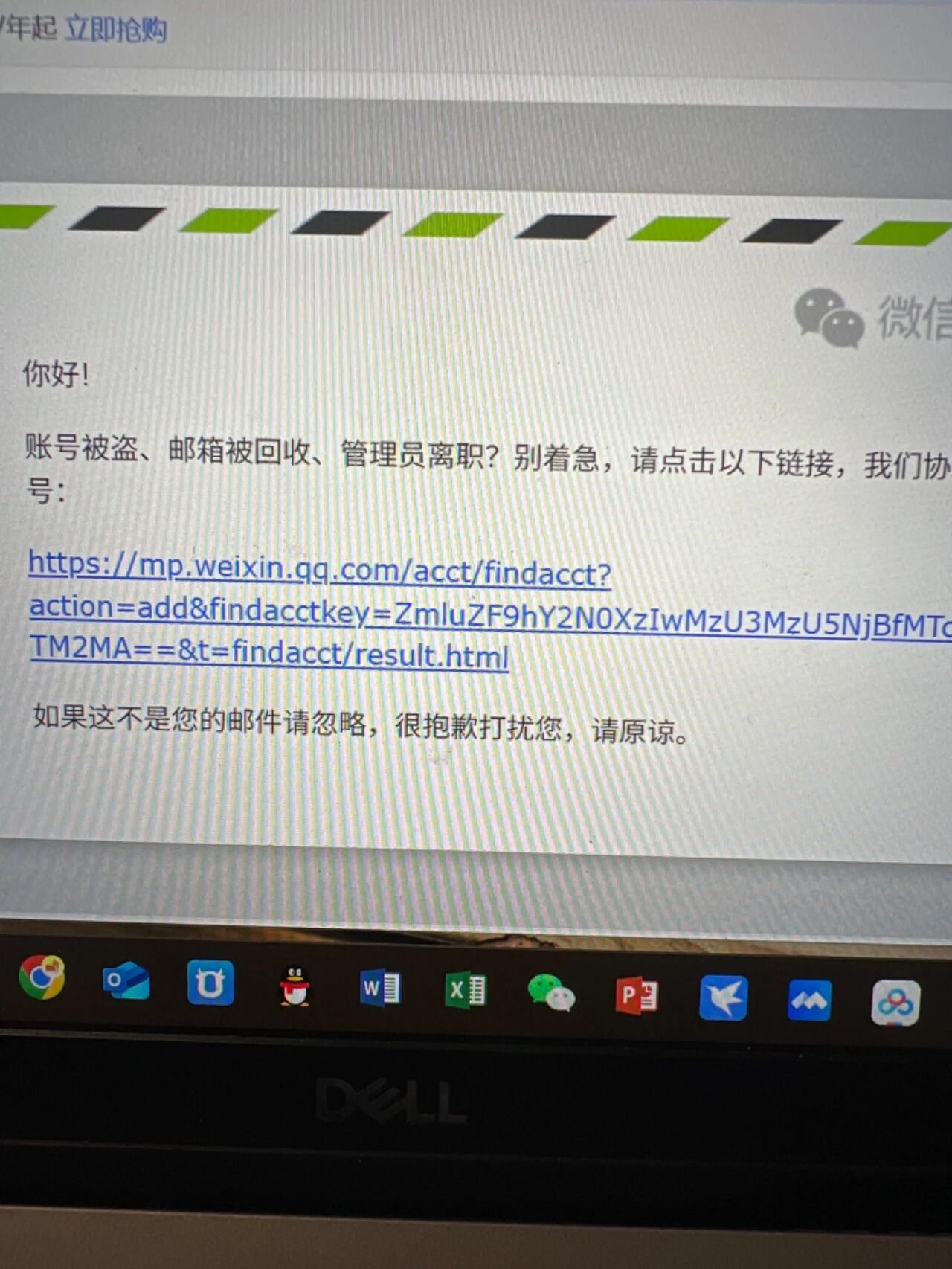 本人微信绑定的公众号,已被冻结,现在申请找回,按照指引,扫码输入邮箱后,邮箱收到的邮件里的链接点击后,显示无效。想重新扫码再发邮件也不行,行,这种情况怎么办?