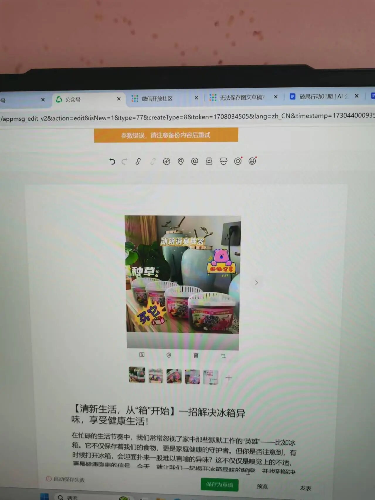 【问题描述】: 图文写作时无法保存草稿,也无法预览。