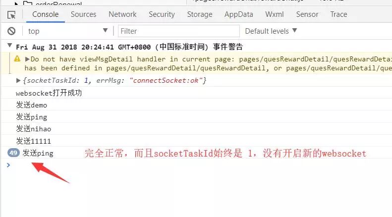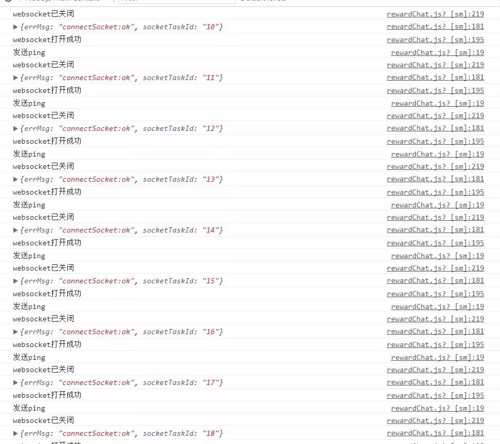 开发者工具里面测试正常,打开远程调试用手机(安卓和苹果)都不行,websocket连接上再发消息(ping 心跳 10秒种发一次),立马就断开了,特别奇怪的问题。