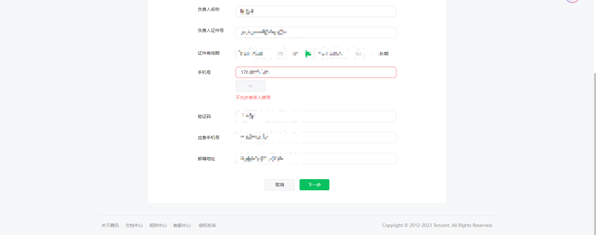 两个小程序信息填的都是一样的,人也是同一个,手机号不行??看不懂啥意思啊,我申请一次就要换一个手机号?
