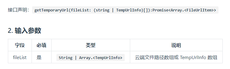 我这里来想请问一下,获取文件临时下载链接getTemporaryUrl这个接口里面传入的参数中提到可以用一个路径数组 fileListL:[]