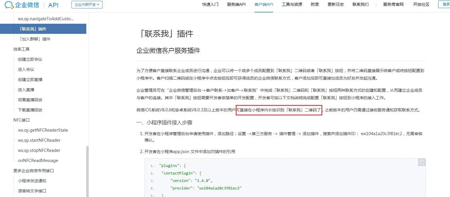 文档写着支持在小程序里长按识别二维码。但插件文档没提供参数配置。要怎么配?
