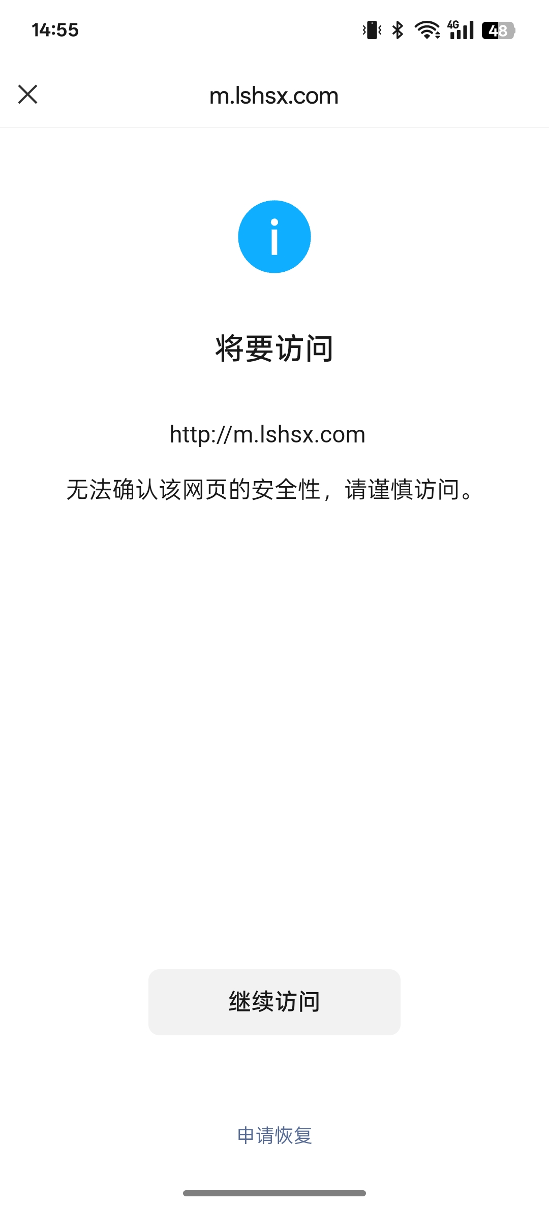 您好,域名http://m.lshsx.com 在西部数码注册并通过优刻得备案通过,浏览器访问正常,我是网站开发者,访问时间如图2025/4/27,微信访问网站出现“无法确认该网页的安全性,请谨慎访问。”经检查网页里没有不安全的内容,请核实后帮忙解除拦截,谢谢!我司没有违法违规的行为,请明察。