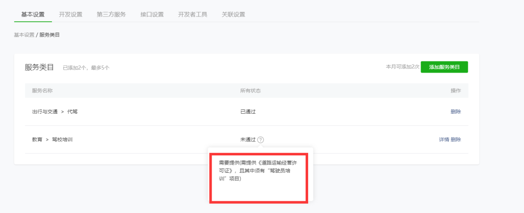 代码审核的时候添加失败,让添加教育-驾校培训类目 ,添加教育驾校培训的时候让添加有“驾驶员培训”项目的道路运输许可证,但营业执照上是有汽车驾驶培训的,怎么才能审核通过。