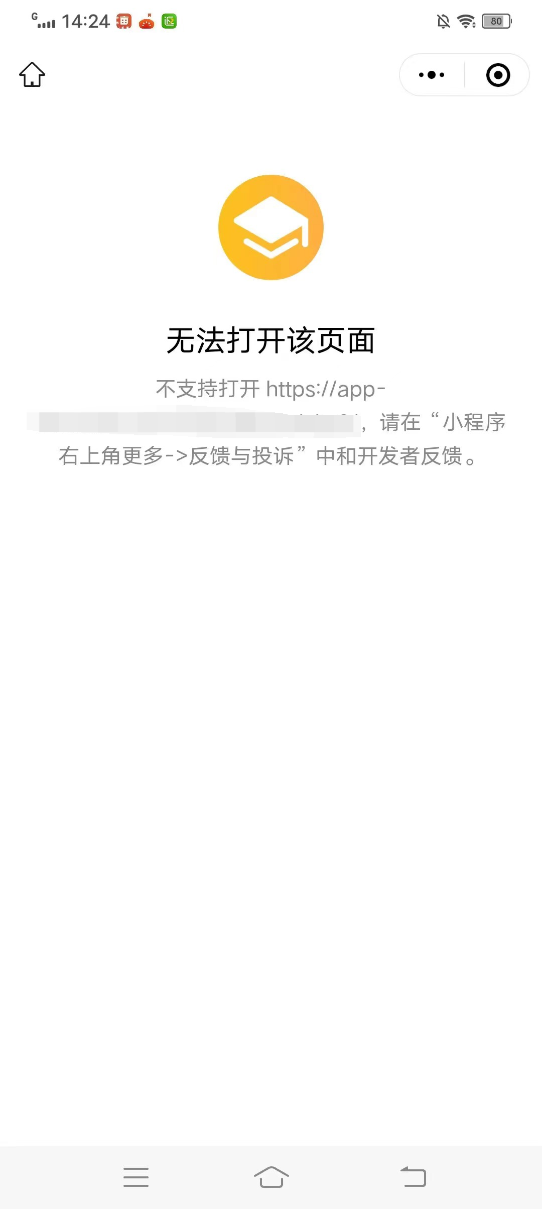 如果配置了公众号文章链接,也打不开了,但提示不一样