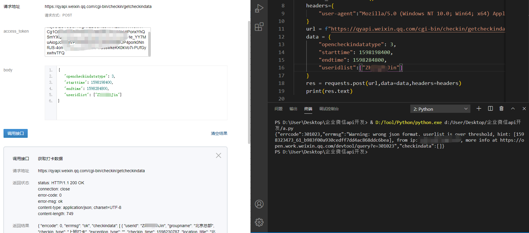 这是错误对比截图,左边是网页调试,右侧是自己写的程序及报错信息。