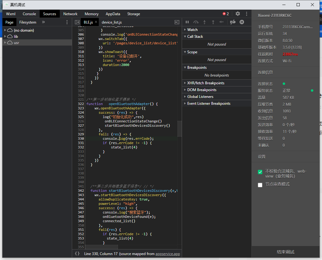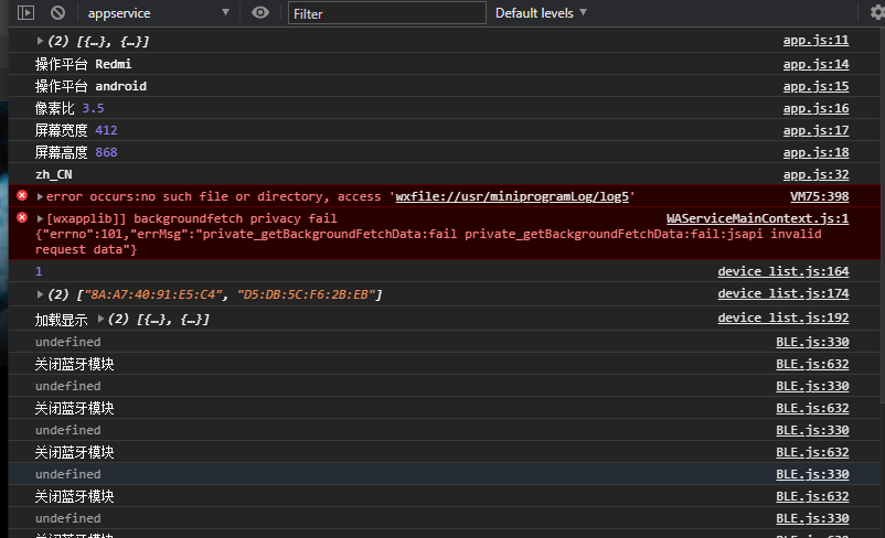 wx.openBluetoothAdapter在程序进入页面后调用出现初始化失败错误回调undefined,使用的机型是红米K70,基本上初始化成功一次后,关闭小程序再打开,就会出现这种情况,重启手机后第一次打开小程序是正常的,后面再打开就异常了