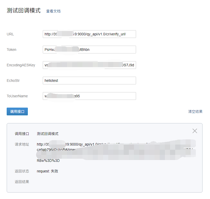 设置企业微信回调URL时,使用调试工具测试,URL的后台显示没有收到企业微信的请求,但是页面提示失败。