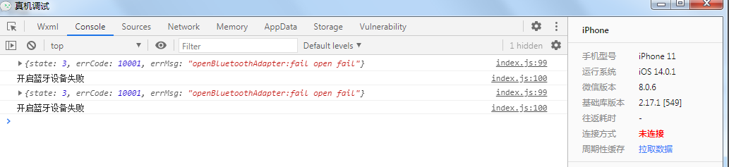 这个是我朋友调用wx.openBluetoothAdapter就直接失败了,我确保他手机蓝牙是正常开启的。