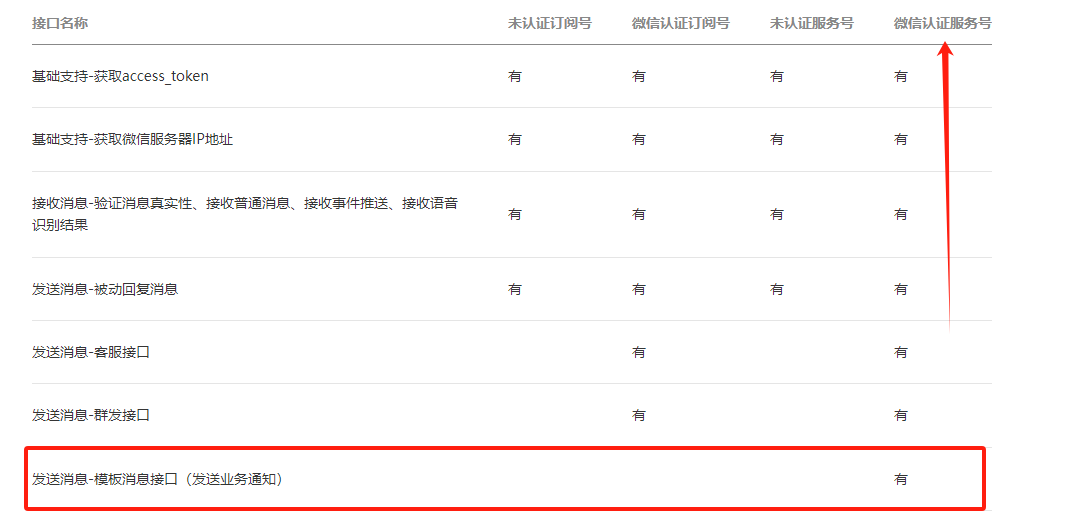 你好,所有服务号都可以在功能->添加功能插件处看到申请模板消息功能的入口,但只有认证后的服务号才可以申请模板消息的使用权限并获得该权限;可查看模板消息接口文档:https://developers.weixin.qq.com/doc/offiaccount/Message_Management/Template_Message_Interface.html