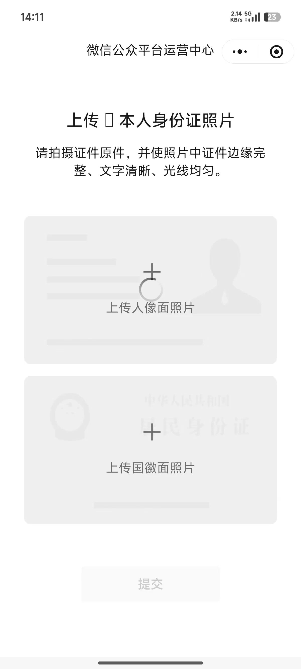 备案拍照上传身份证的时候一直在转圈,无法提交