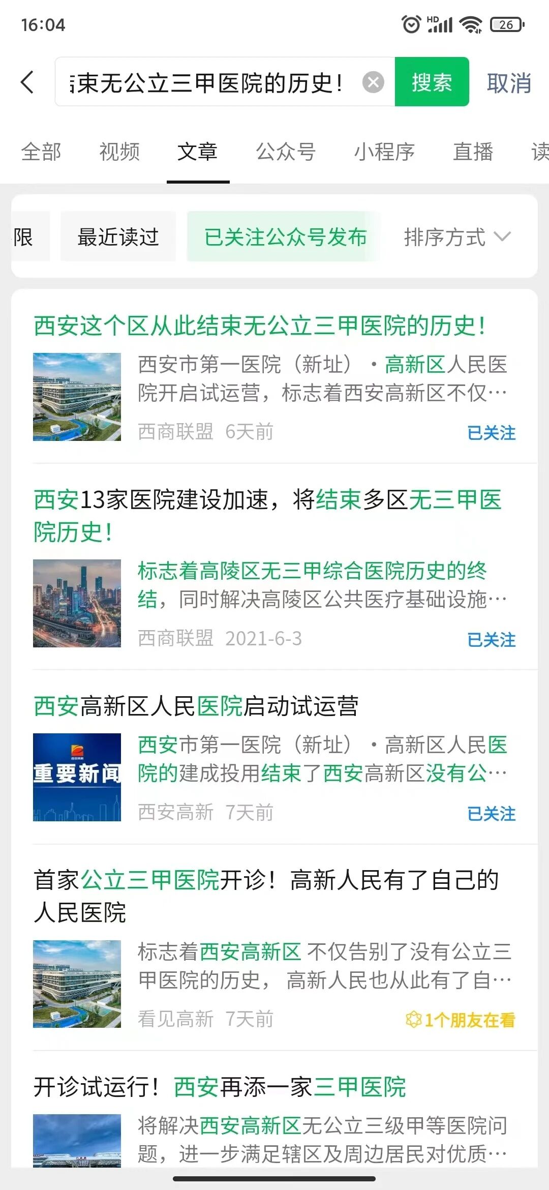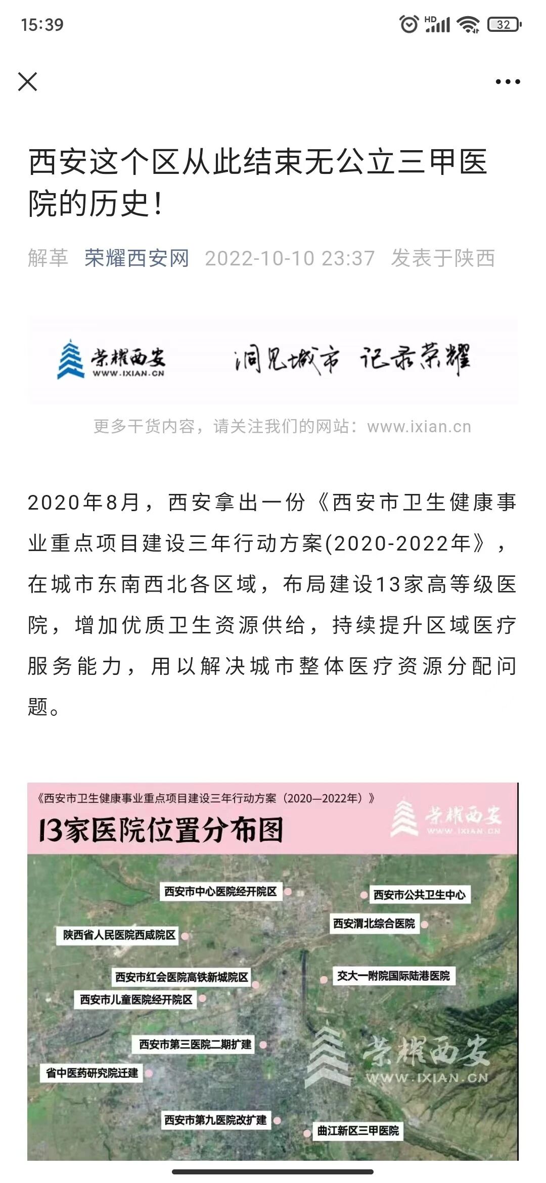 举例文章:10月10日文章《西安这个区从此结束无公立三甲医院的历史!》链接:https://mp.weixin.qq.com/s/thOCFmYOGRn_2SagHzlMeg
