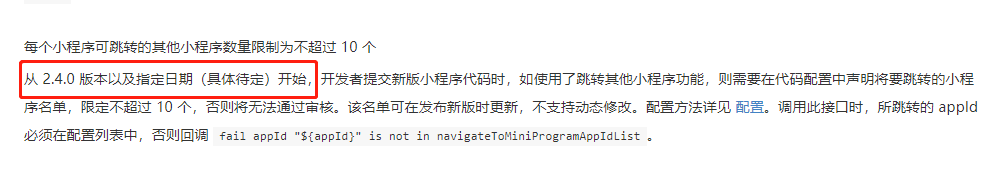 建议这里进行一下改动吧,因为开发文档目前的写法所有人的理解肯定都是这个基础库和时间仅仅是针对不超过 10 个;以前还有需要绑定同一公众号的提醒现在已经没了