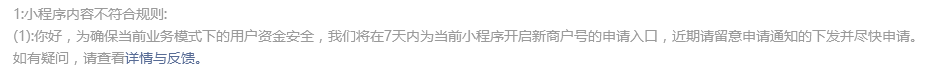 -审核的工作人员你好,很高兴收到了代码审核的结果,发布审核未通过的原因是:您们会为当前小程序开启新商户号的申请入口。暂未理解为何要重新开启商户号申请入口,我们是否需要提供什么协助?
