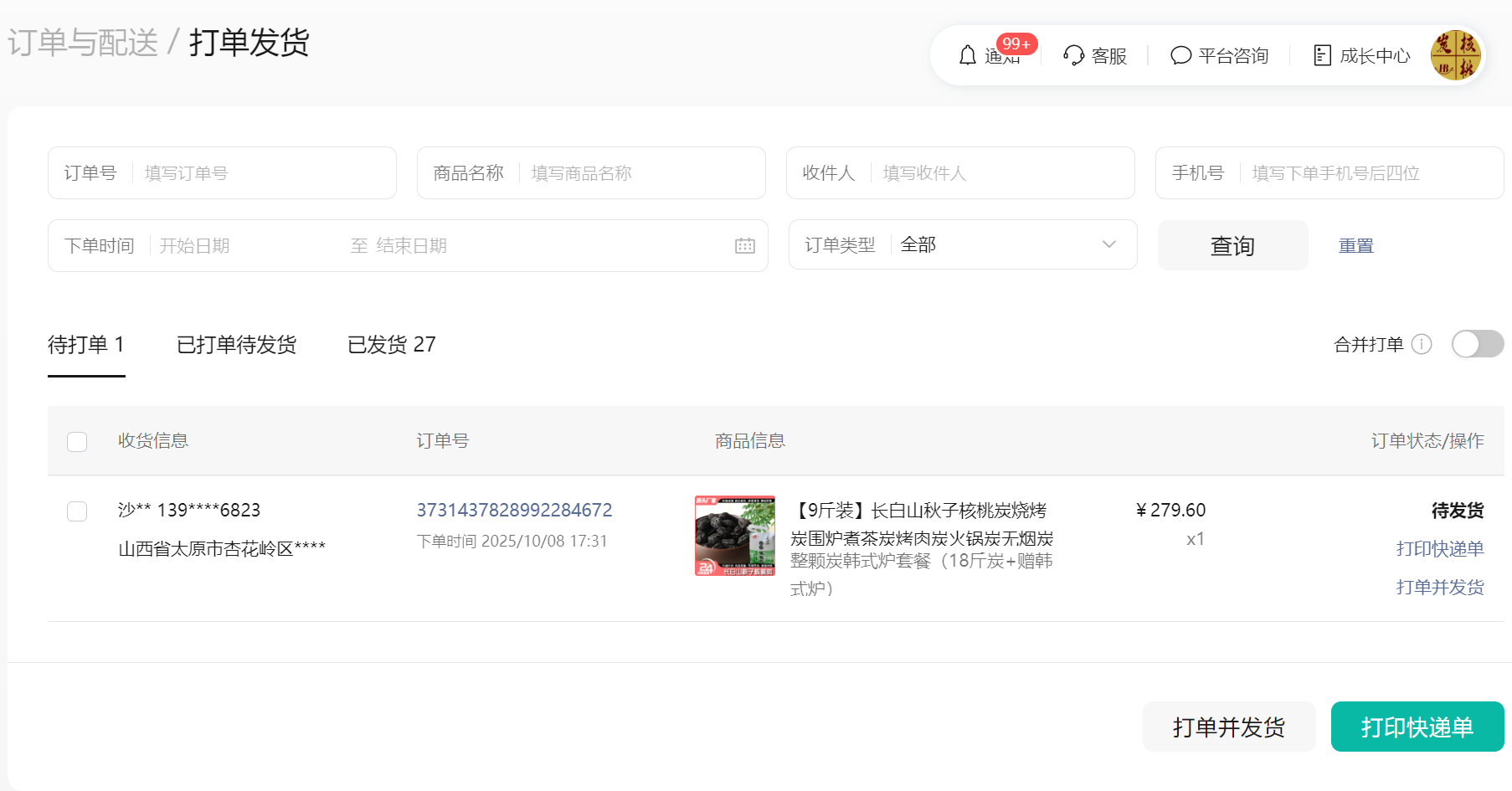 我这个订单需要拆成三个包裹发货,请问要怎么操作?