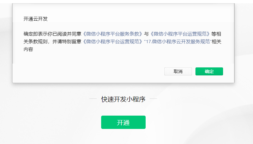 你好,暂不支持“快速创建”的小程序开通云开发。