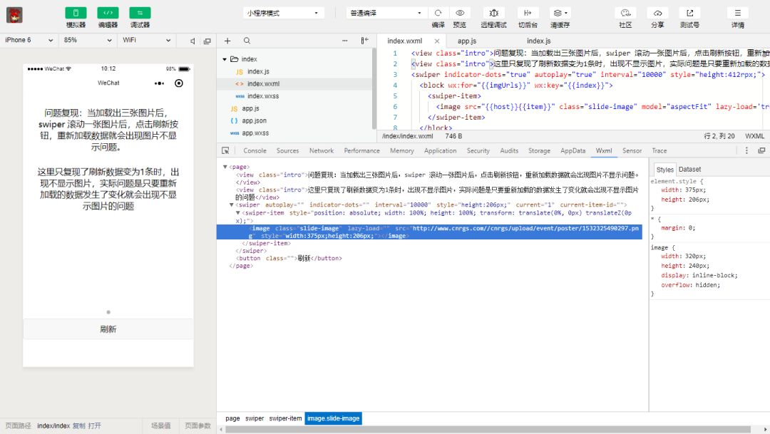 sweiper中的swiper-item通过for循环遍历banners,banners中有图片路径数据,但是sweiper有时不会渲染,显示为空白,这个显示偶现,我多次尝试才可能出现几次,但是会影响用户体验。