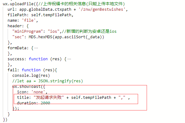 打开调试器时,上传录音正常,但是关闭调试器时,上传录音走fail?请求的接口路径也是配置的正式路径,请问为什么会这样?